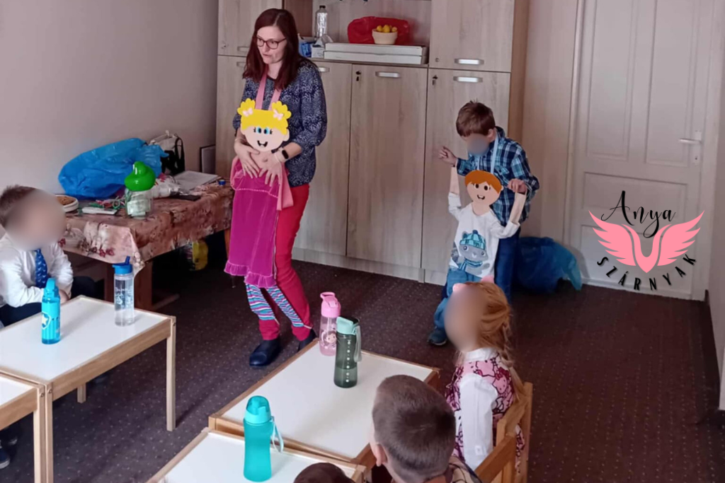 Majd a mesével folytattam, volt aki ismerte már, volt aki még nem, de az egyik kisfiú a végén hangosan oda szólt: „Ez jó mese volt!” – aminek persze nagyon örültem! A mesét külön elkészítettem nekik és kinyomtattam A4-es lapokra, mivel nem volt meg könyvben nekem.